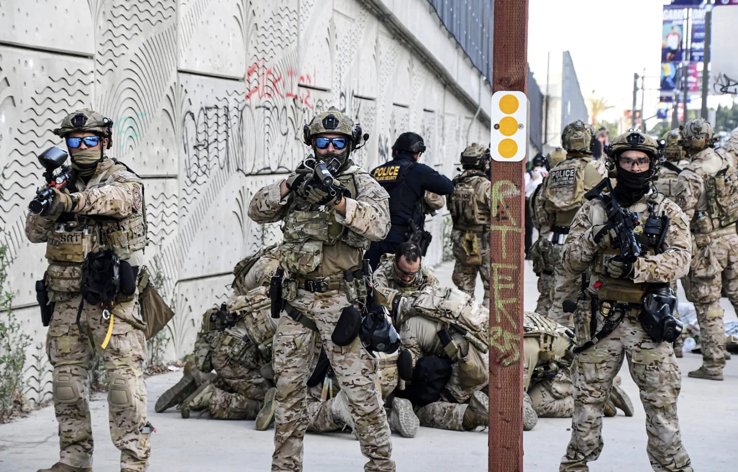 In Los Angeles, activists painted giant murals reading “We’re Not Your Enemy.” In Portland, cyclists staged a “World Naked Bike Ride” in protest of potential Guard deployment. In Chicago, demonstrations escalated after federal agents accompanying Guard personnel fired tear gas and pepper balls into crowds, injuries later documented in a lawsuit.